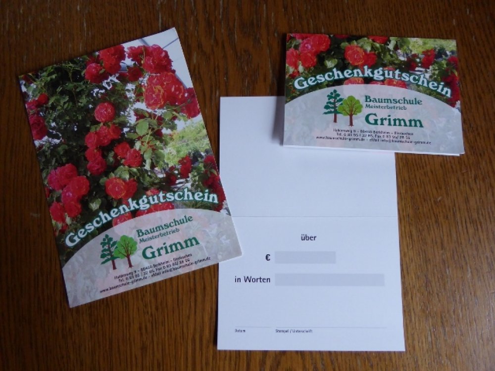 Sie sind auf der Suche nach einem passenden Geschenk? Ob zum Geburtstag, zur Hochzeit, zu anderen Anlässen oder als Dankeschön – mit einem Geschenkgutschein der Baumschule Grimm liegen Sie immer richtig.